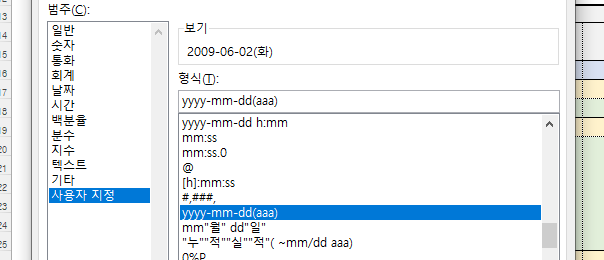 아래처럼 셀 서식을 사용자 지정 형식으로 설정한 경우 조건문에 세분화가 필요하다.
